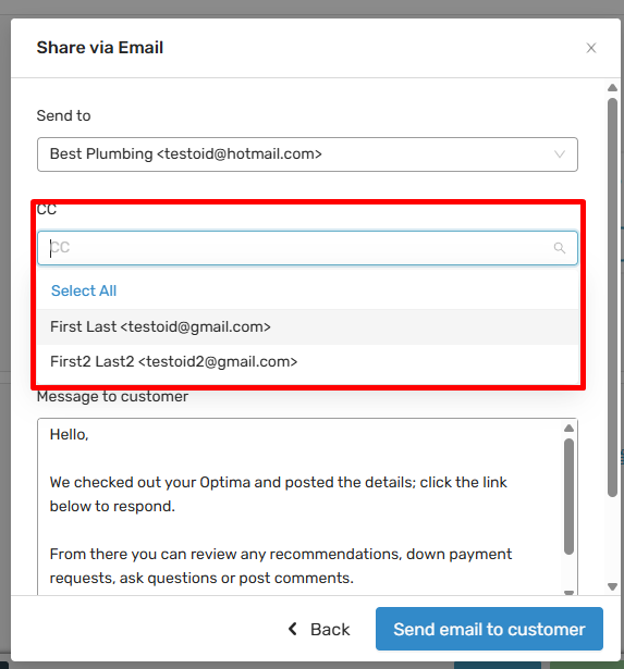 - Once all emails are selected, choose to "Send Email to Customer"